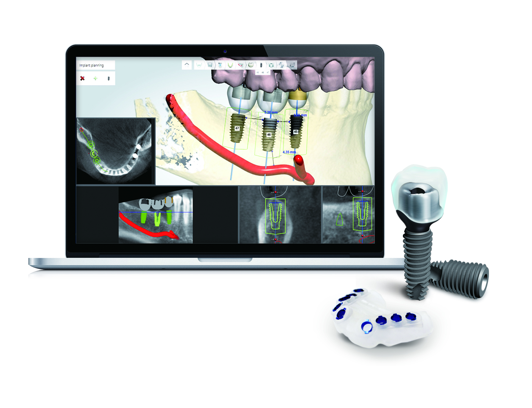 を決定し、それらを忠実に手術で再現するために作成されるオーダーメイドの医療器具(マウスピース型テンプレート)です。 -